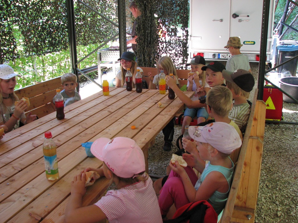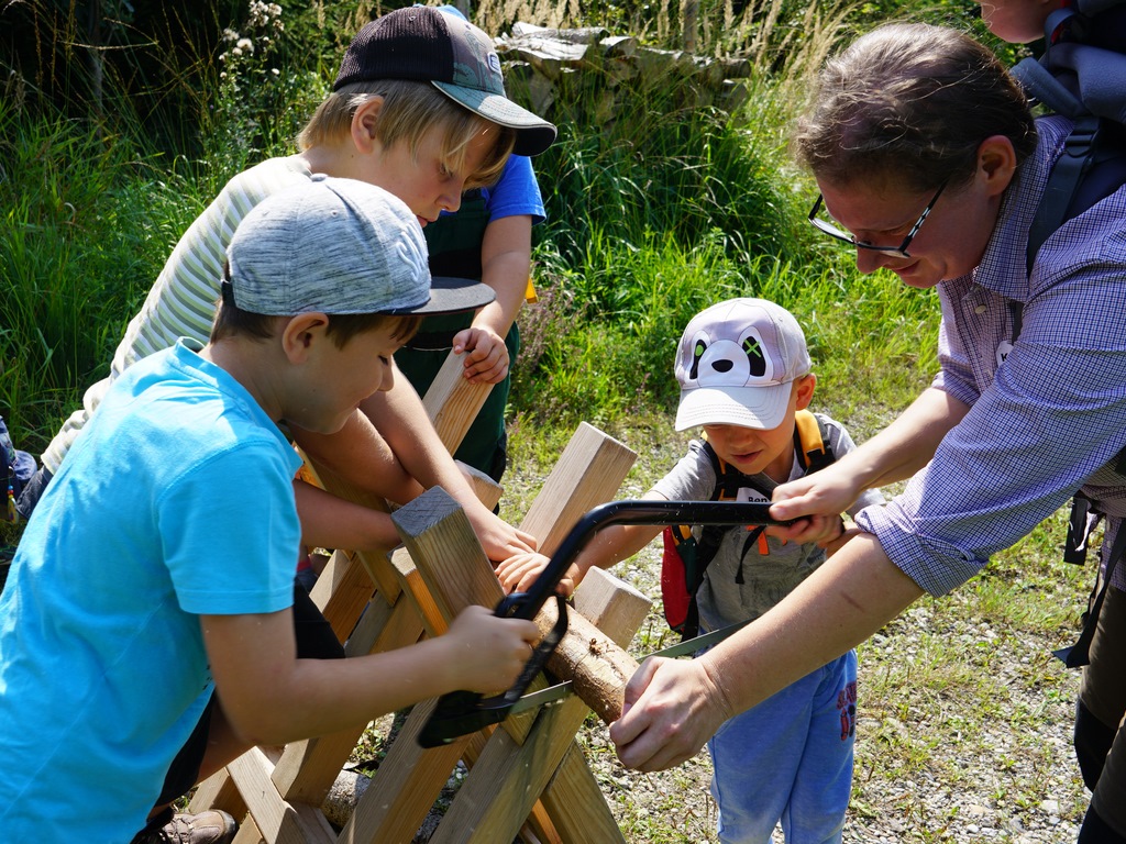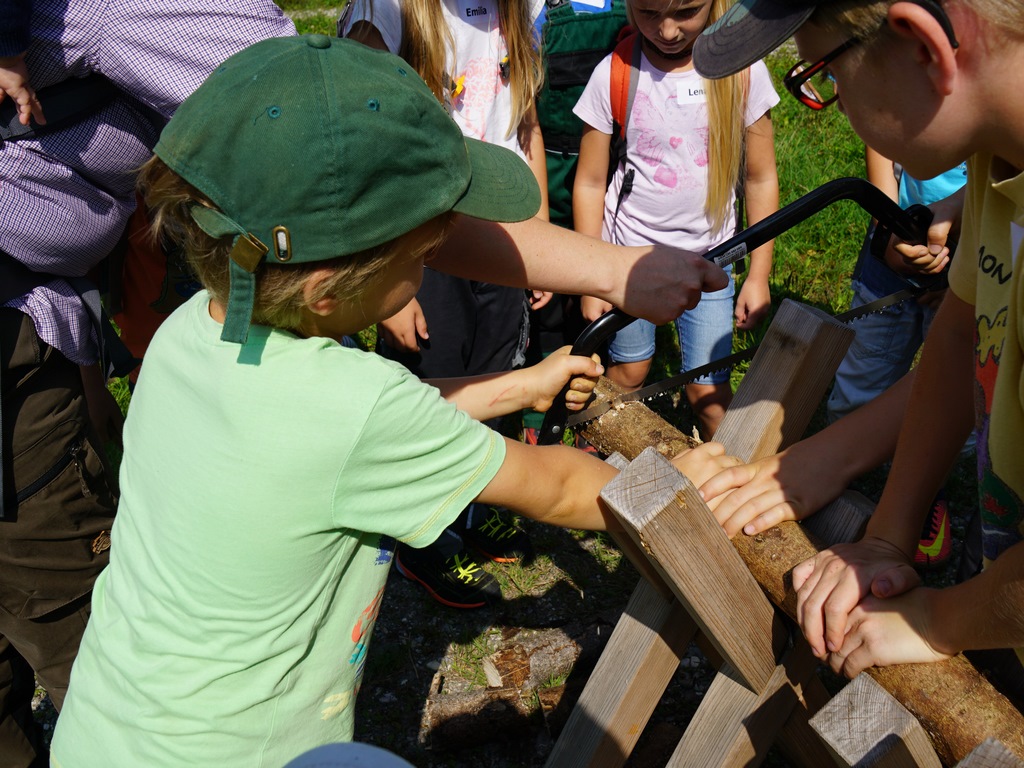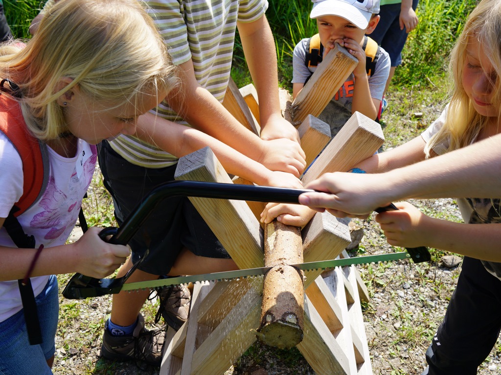 Nachdem schließlich Geschicklichkeit, Kraft und Teamwork beim gemeinsamen zersägen mehrerer Äste erprobt wurde, wurden nach drei Stunden voller Erlebnisse die erschöpften Energiespeicher mit Bratwürsten vom Grill und bereitstehenden Getränken wieder aufgefüllt.