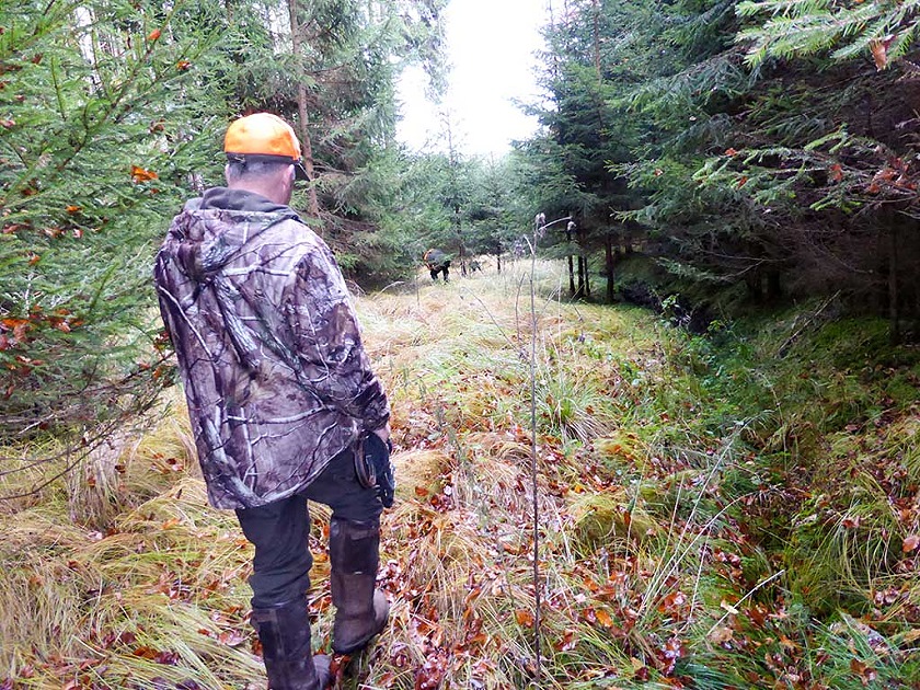 Lange passiert nichts, vereinzelt fallen ein paar Schüsse, aber nichts was auf Sauen im Trieb Hinweis geben könnte. Es fehlt das überhitzende Gebell der Stöberhunde, die sonst immer Anlass geben, dass unsere tapferen vierbeinigen Helfer auf Schwarzwild gestoßen sind. Oder die Gewehrsalven der Schützen, wenn eine Rotte im Anwechseln ist.
