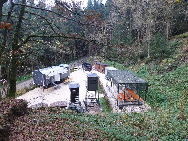 Dann werden die gefährdeten Zufahrtswege gesperrt, die Schützen angestellt und auch ich beziehe meinen nagelneuen Drückjagdstand!