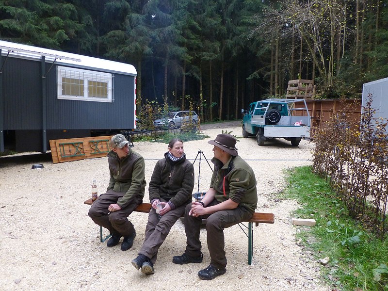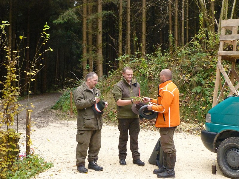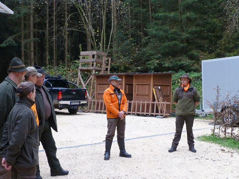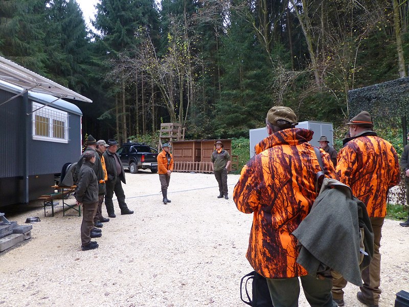Unser Jagdaufseher übernimmt an diesem Tag die Jagdleitung und so beginnt der Tag, nachdem sich alle Jäger auf unserem Jagdbetriebsplatz eingefunden haben, mit dem traditionellen Jagdhorn anblasen. |