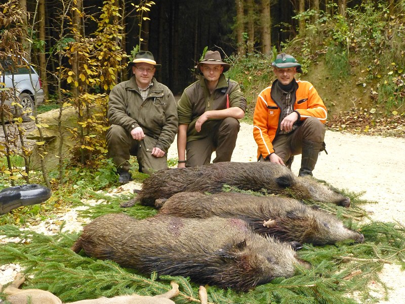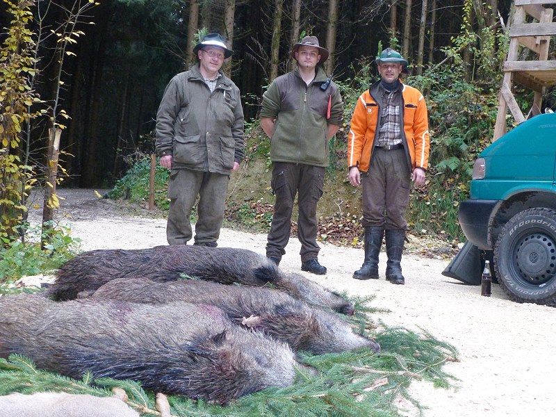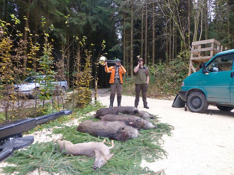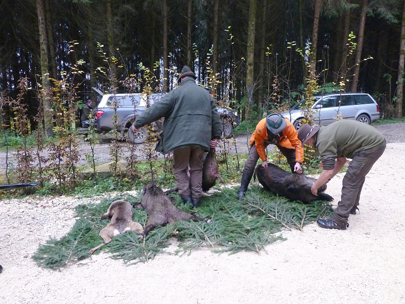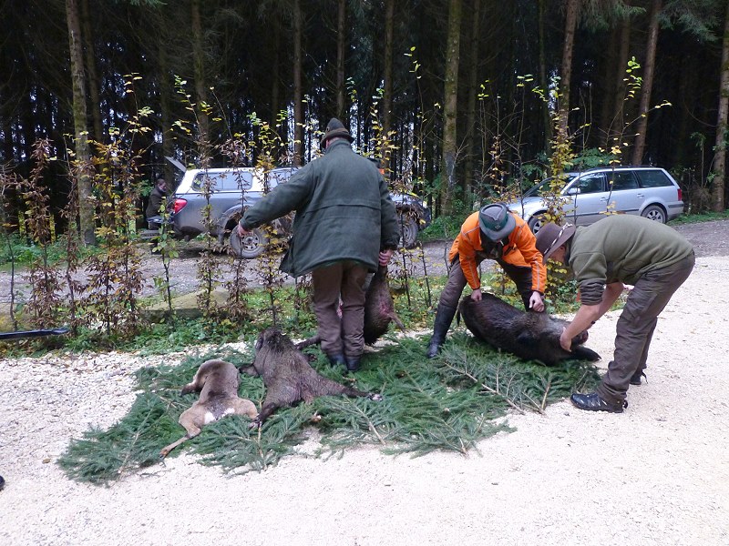 Andere Jäger hatten mehr Glück und Waidmannsheil, letztendlich landen drei erlegte Wildschweine und ein Reh auf unserer Strecke.