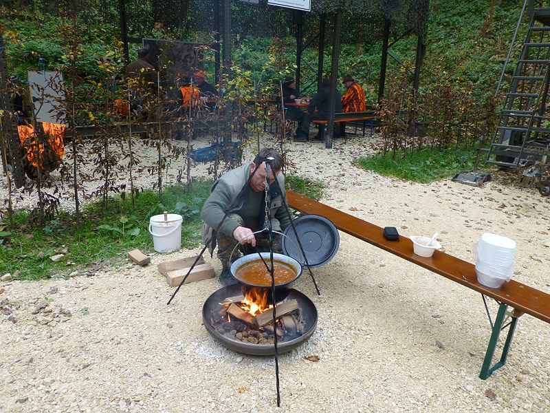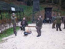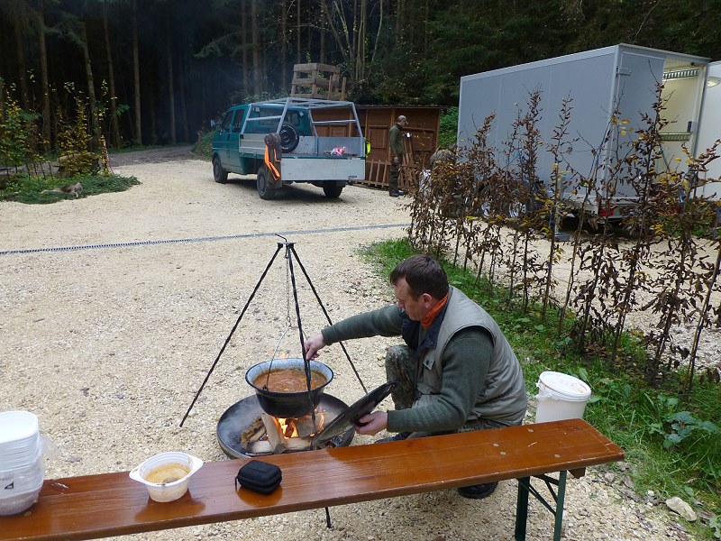 Die Stimmung unter den Jägern ist sehr gut und der erfolgreiche Jagdtag hier in Kettershausen findet seinen Ausklang beim Schüsselltreiben in Form einer gut gewürzten Wildfleisch-Gulaschsuppe und einer guten Halbe! So wie sichs gehört.