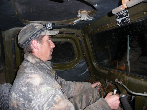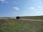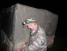 Dann hat Wladimir keine Zeit mehr für uns. Andere Jäger sind gekommen, vom Volksstamm der Tartaren, und sie leben draußen in Zelten, brauchen Wladimir und seine Mannen, wenn sie erfolgreich jagen wollen. Also gehe ich noch mal auf den Ansitz, bevor es bald heimgeht. Sieben Tage nach meinen ersten Jagderfolg sitze ich wieder am selben Platz. Bei der Hinfahrt mussten wir einen Reifen wechseln, weil wir uns einen Platten gefahren hatten, aber das ist im Nu erledigt. Ein zweiter Jäger ist dabei und auch er wird von Alexander auf einen Ansitzplatz gebracht. |