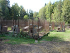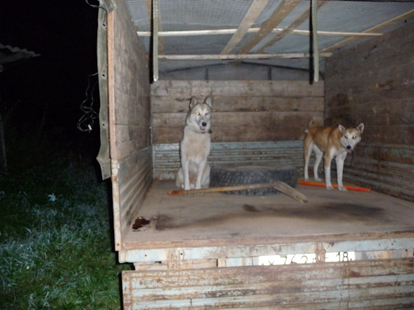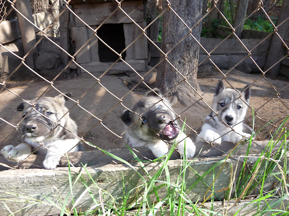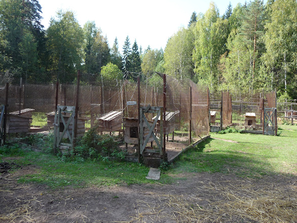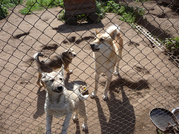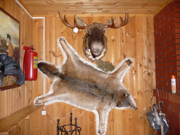 | Der Jagdhof ist auch die größte russische Zuchtstation für Laikas (Huskies), eine russische Jagdhund-Rasse. Etwa 120 Hunde leben hier, erklärt Natascha und entsprechend lautes Gebell empfängt uns. Viele Preise hat er schon einfahren können, Wladimir der Jagdchef. Er ist stolz, uns seine Pokale und Sachpreise vorzuführen zu können. |