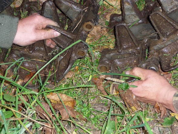| Nun denn. Alle haben wir mal in einer Armee gedient, in welcher auch immer. Ruck-zuck und mit vereinten russischen und deutschen Kräften und Wissen ist die Kette wieder da, wo sie hingehört. |