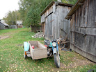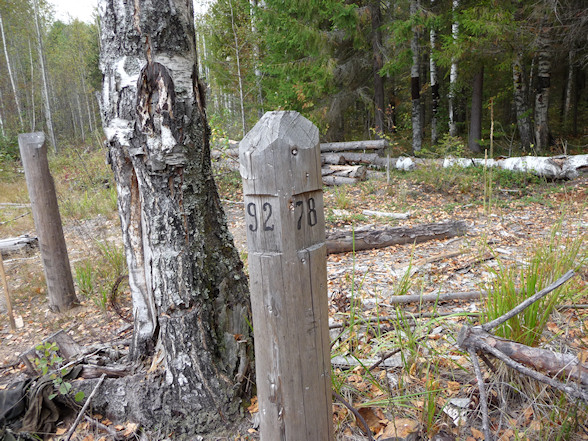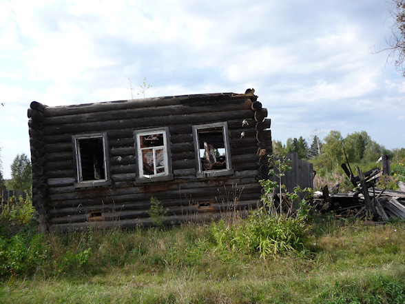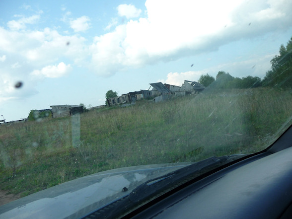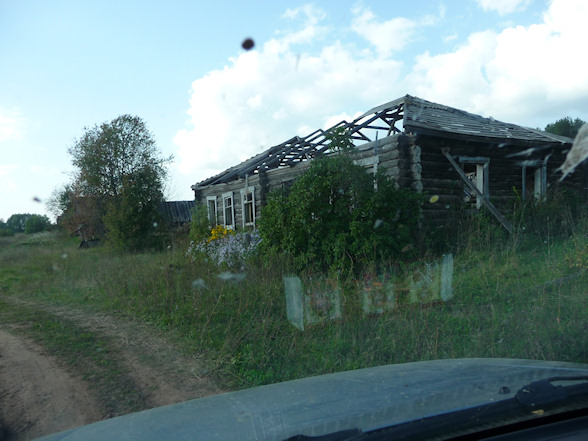 | Den Riegel nehme ich mit zur Jagd, denn heute geht’s wieder raus. Ein anderer kettenrauchender Fahrer holt mich heute ab. Sergey 1 bleibt zu Hause, will endlich in die russische Banja (Sauna) nebenan und ein Schwätzchen halten mit seinen ehemaligen Landsleuten. Schweigend sitze ich im russischen geländegängigen Uaz und wir rumpeln durch das sechzig tausend Hektar große Revier des Wladimir Rijabov. Es geht vorbei an ausgestorbenen ehemaligen Dörfern. Die ausgewanderten Russlanddeutschen und die in den Neunzigern aufkommende Landflucht haben diese Geisterdörfer geschaffen. |