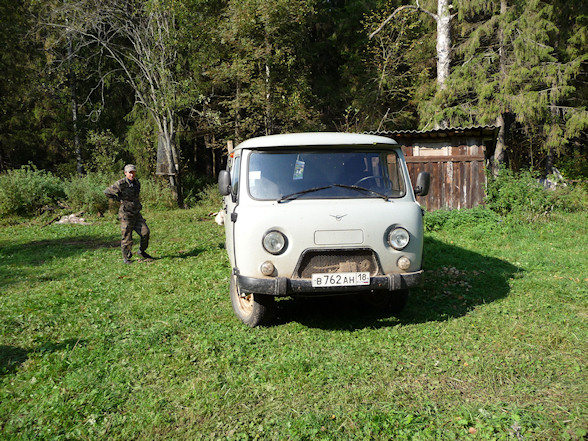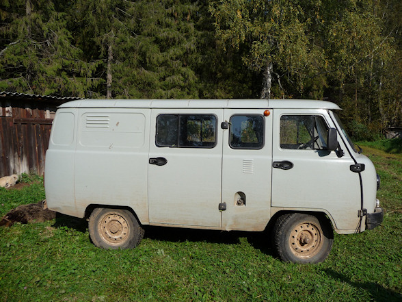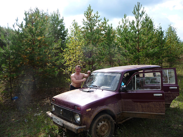 | Dann holen uns am Bahnhof in Jschewsk zwei japanische Geländewagen ab, organisiert von unseren Freunden. Und ab geht’s in die Pampa. Nach dem Einkaufen europäischer Munition fahren wir etwa 250 Kilometer nordwestlich ins eigentliche organisierte Jagdgebiet. |