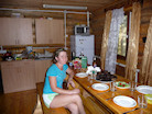 Und, wer ist das? Da kommt plötzlich eine Dorfschönheit mit einer etwas kratzbürstigen Mimik auf uns zu und stellt sich als Natascha vor, die - so erfahre ich nebenbei - uns diese lange Zeit bekochen wird und uns fünf gestandene Mannsbilder versorgen soll. |