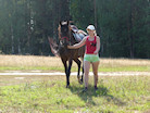 Weiter geht’s. Etwa 30 Kilometer sind wir gefahren, da hat Sergey 1 nach dem Kettenproblem oben über dem Führerhaus Platz genommen, denn im Laderaum ist es unerträglich laut und heiß. Ich kann’s verstehen, denn auch ich höre eine Weile fast nichts mehr, als wir am Ziel angekommen sind. Die beiden Sergeys setzen mich um 19.00 Uhr irgendwo ab und warten in etwa zwei Kilometern Entfernung mit dem Spezialfahrzeug auf mich. Ein idyllisches lauschiges Plätzchen mit einem typisch russisch angelegten kleinen Haferfeld liegt vor mir. |