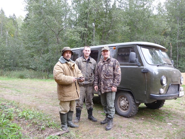 Die Tage und Wochen vergehen, einen Elch bekomme ich nicht mehr zu Gesicht. Einmal tobt einer lautstark heran, so dass ich mit meiner Flinte inmitten eines Kahlschlaggeländes das Zittern bekomme; aber er traut sich doch nicht heraus aus dem Bestand, der große Hirsch, er hat wohl Witterung aufgenommen und ist gewarnt. Sehr zum Ärger des Revierchefs Wladimir, denn der will Beute machen! Michael, mein Kunde, ist laufend damit beschäftigt, Papiere zusammen zu tragen, für ein oder mehrere „cites Dokumente“, die zur Ausfuhr meiner im Vorjahr hier geschossenen Trophäen gebraucht werden. Er hat es nicht leicht damit und erzählt abends in der Sauna, wie das so vor sich geht mit den Behörden hier und in Ischewsk, der Bezirkshauptstadt, die er bereits mehrere Mal ansteuern musste, und das ist immer eine Ganztagesreise mit dem Geländewagen. Sergey hilft ihm, so gut es geht, und wacht akribisch darüber, dass auch keine Unterschrift und kein Stempel in den Papieren vergessen wird. |