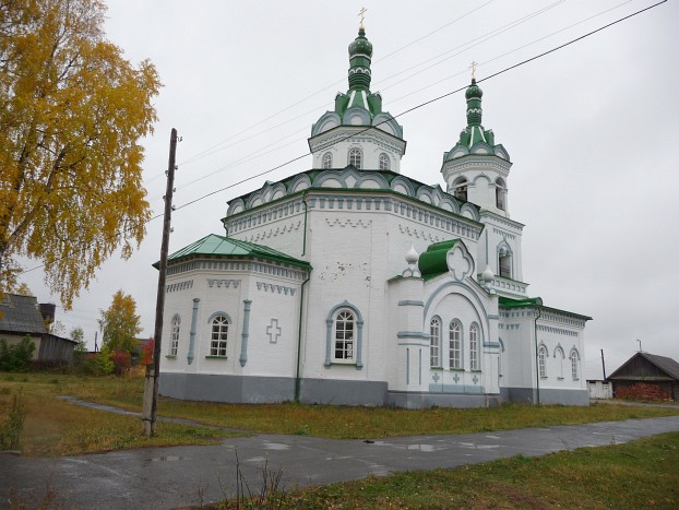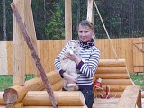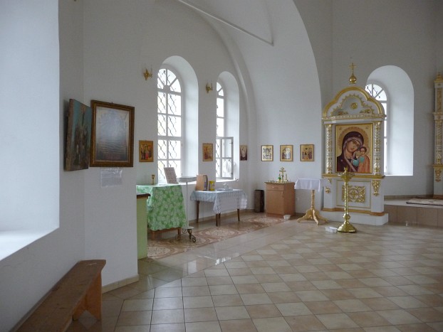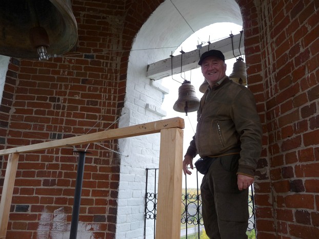 | Ich setze ein paar Tage mit der Jagd aus. Artöm fährt uns in der Gegend herum, zeigt uns eine schön restaurierte Kirche in der Nähe und ich darf gegen den Turnus die Kirchenglocken von Hand läuten, was großen Spaß macht. |