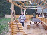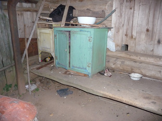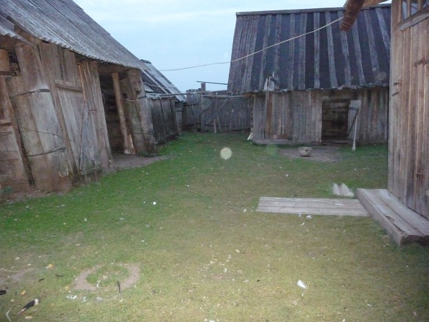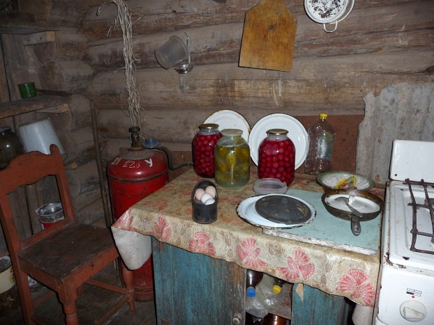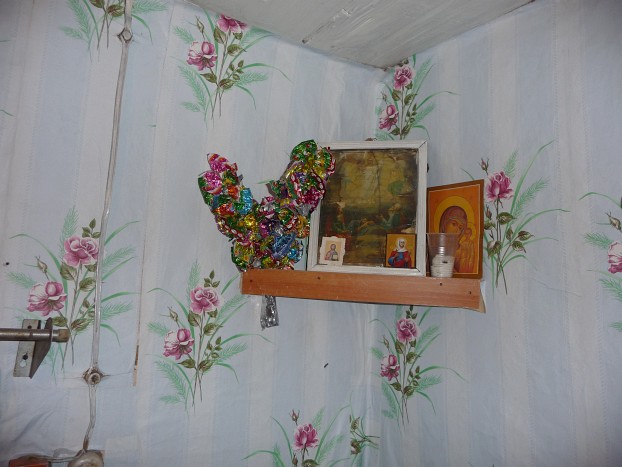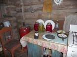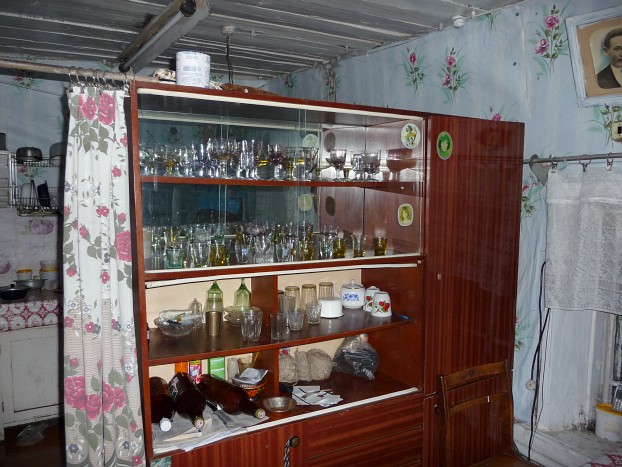 | Eine echte Udmurtin, weit über 70 Jahre alt, lebt da in dem ländlichen Anwesen mit Gänsen, Ziegen, Hühnern und Bienenstöcken im Garten, die gerade vor ein paar Tagen von einem Bären geplündert wurden. Die Wohnung mutet mich an wie eine Puppenstube: Es riecht nach frisch gewachstem Boden und alles ist sauber und aufgeräumt, als hätte sie von meinem Besuch geahnt. Ich gebe ihr zum Dank, dass sie mich empfangen hat, eine Hand voll Euro und lange noch schaut und winkt sie uns hinterher aus den kleinen mit bunten Rahmen verzierten Fenstern, in ihrer guten Stube. |