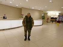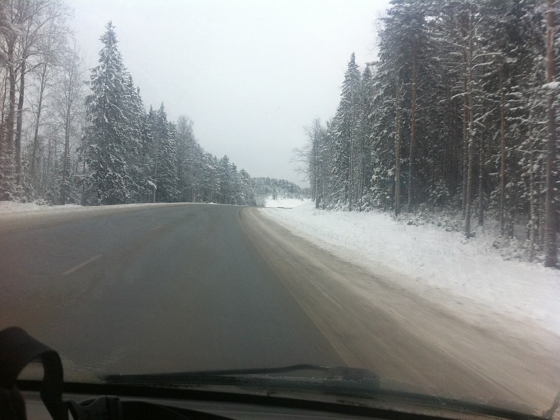 | Sergey hat schon seine Jägerklamotten an und ich steige mit halbhohen Wildlederstiefelchen in den Kleinbus, den nun Alex unser/mein Jagd Guide aus der riesigen und etwas protzigen Stadt heraus gegen Norden ins seenreiche Karelien steuert! |