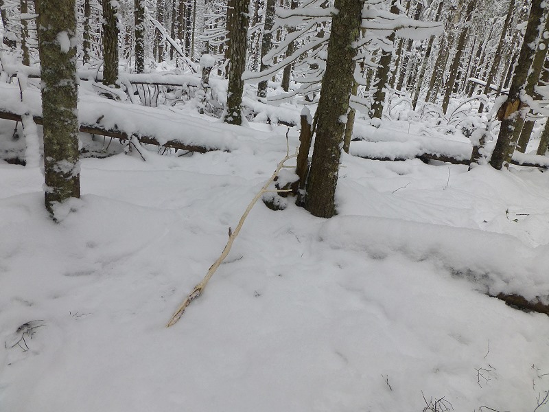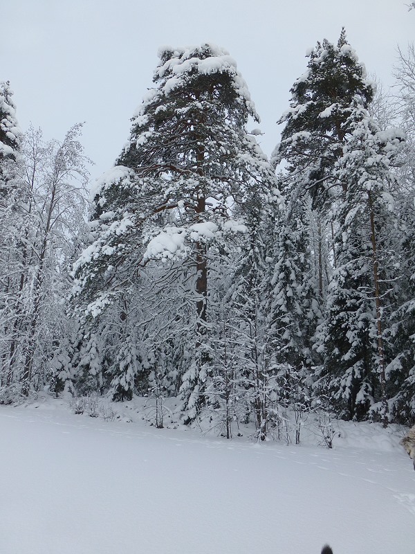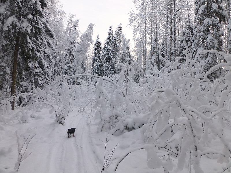 Wir folgen Victor, es ist sein Revier hier und er hat das Sagen, aber ich dränge auf Geschwindigkeit, dem Bellen der Hunde hinterher zu kommen. Irgendwo da vorne haben die wohl eine warme Spur und nun gilt es schnell zu sein und den Luchs, (wenns denn einer ist), nicht entkommen zu lassen. Wir geben unser Bestes, denn in dem zugeschneiten Urwald ist ein Vorwärtskommen eine Kraftanstrengung sondergleichen.