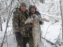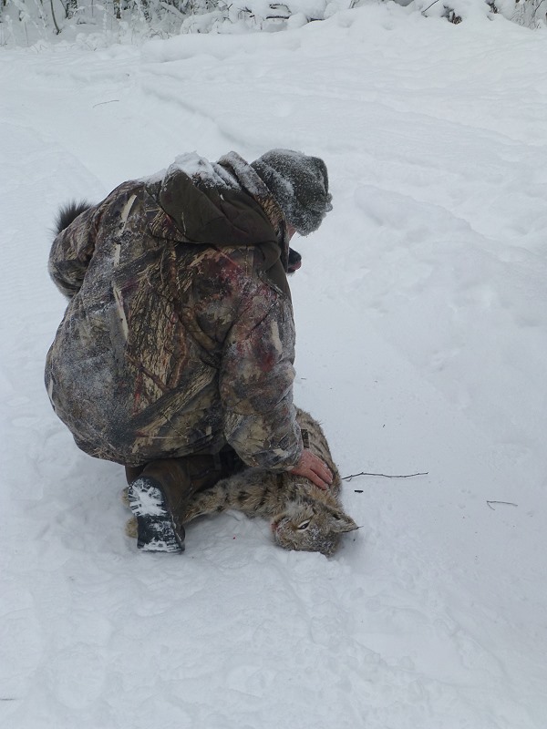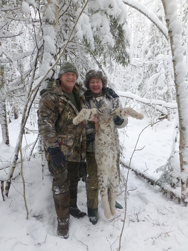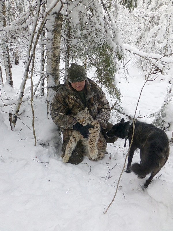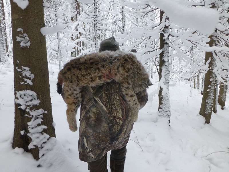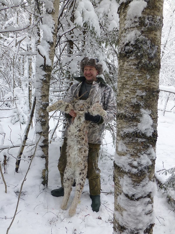 Mein Gott, das gibt’s doch nicht, ich halte den Luchs in meinen Armen und kann’s kaum fassen. Die Chancen beim ersten Anlauf hier in Karelien einen Luchs zu erlegen war sehr gering, sogar russische Freunde haben mir abgeraten. Die Streifgebiete und Habitate der Luchse sind so ausgedehnt, dass es einfach nur Glück war und auch noch an meinem Geburtstag auf diese Spezies zu treffen.